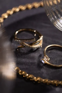 Let yourself be enchanted by our Adjustable Sparkling Ring from the Festive Collection – one of our jewellery highlights from our Advent Calendar. This ring with its numerous details is not only an absolute eye-catcher, but is also designed to fit every finger. Its unique shape, arrangement and exquisite design make it an eye-catching piece of jewellery. Available in radiant gold, this ring makes a sparkling statement and adds a festive touch to any look. An absolute must-have for anyone looking for an extravagant and individual accessory.