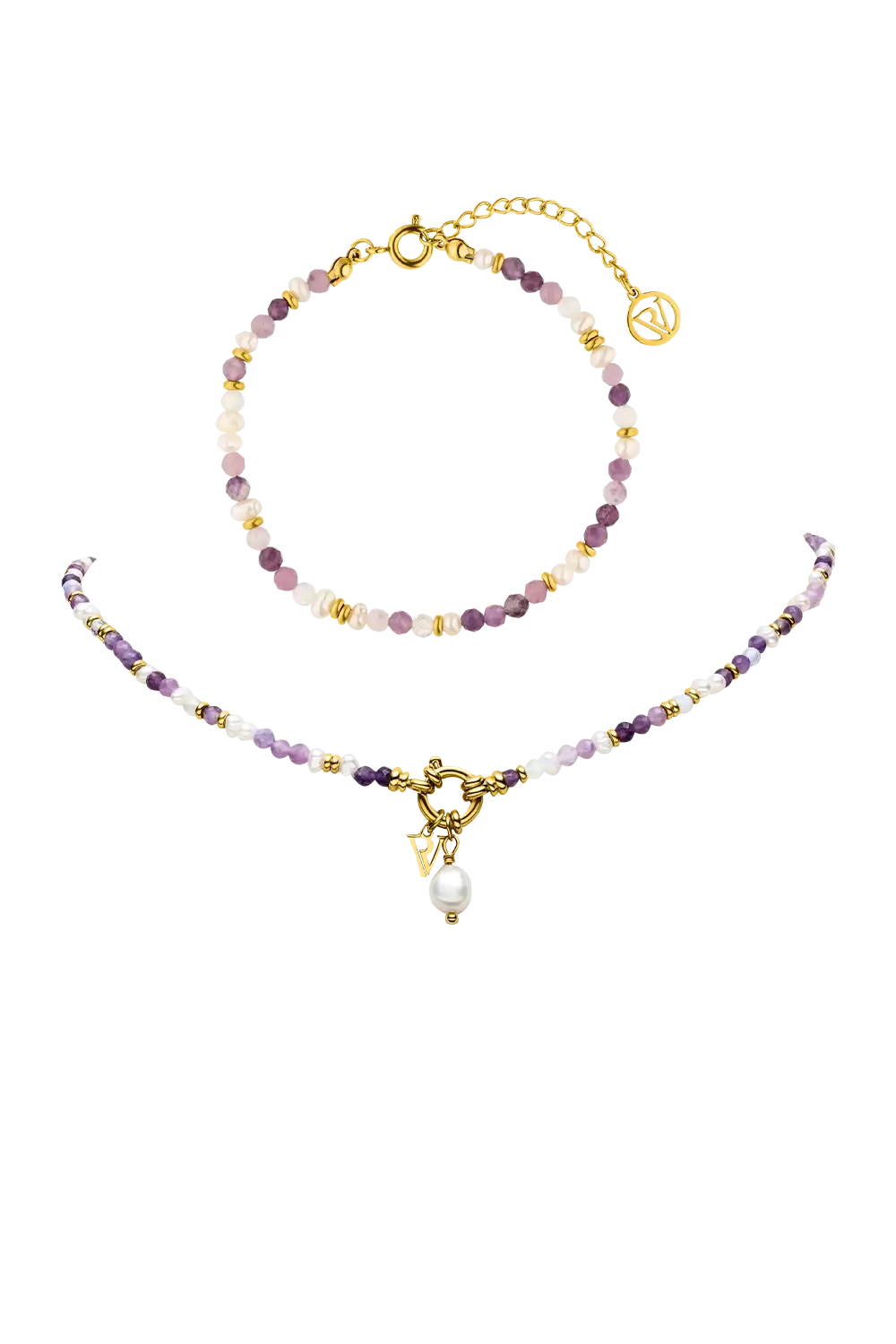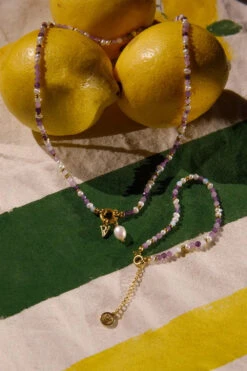 The Amalfi Lilac Bead Necklace is an embodiment of color and elegance. Drawing inspiration from the vibrant hues of Bougainvillea, this necklace captures the lively beauty of the Amalfi Coast. The lilac beads add a playful touch, creating a masterpiece that brings out your personality. The set consists of the Amalfi Lilac Bead Necklace 14K Gold Plated and the Amalfi Lilac Bead Bracelet 14K Gold Plated. Available in Silver & Gold.