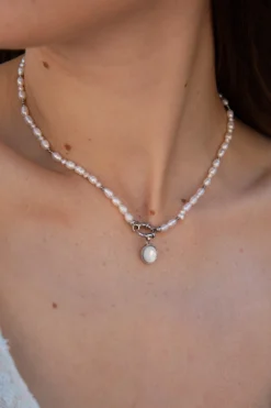 Indulge in the elegance of the Amalfi Pearl Necklace. Inspired by the soft colors of the Amalfi Coast, these pearls capture the timeless beauty of the coast. The pearls subtly enhance your outfit, while the design echoes Mediterranean architecture. A piece that delicately accentuates your individuality. Available in Silver & Gold.