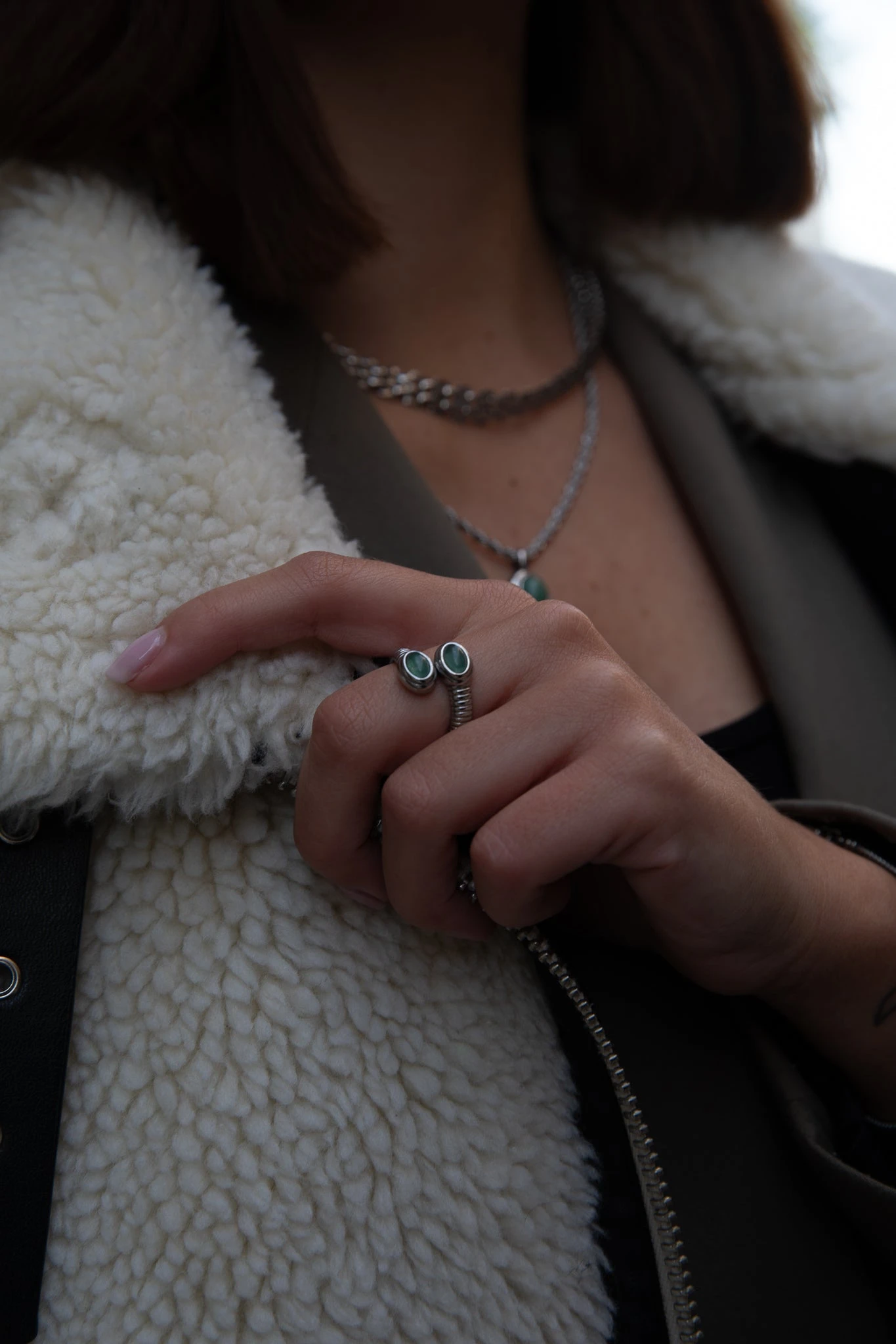 The Aventurine ring from our Avenue Collection is a jewel that carries the energy of the big city. Inspired by urban architecture and modern lifestyles, this unique piece of jewellery fuses the natural beauty of the aventurine stone with urban sophistication. The green, natural aventurine gemstones symbolize the vitality of the metropolis. The exquisite design, characterized by lines and structures, lends the ring a timeless elegance. Made from stainless steel and available in the timeless colours Silver and Gold.