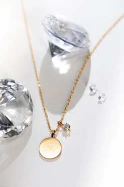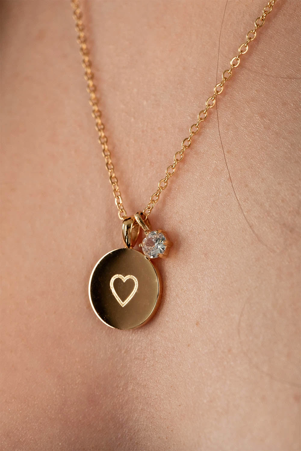 Say hello to our beautiful Birthstone Necklace, a stunning piece that comes with a golden plate and a coloured stone representing your birth month. April stands for innocence and love and is represented by a bright clear zirconia stone. Visit our website paul-valentine.com to add an engraving with your name, initials, or a number on the plate and give this necklace even more meaning (up to 4 characters)! Made from recycled stainless steel and 14k gold plating.