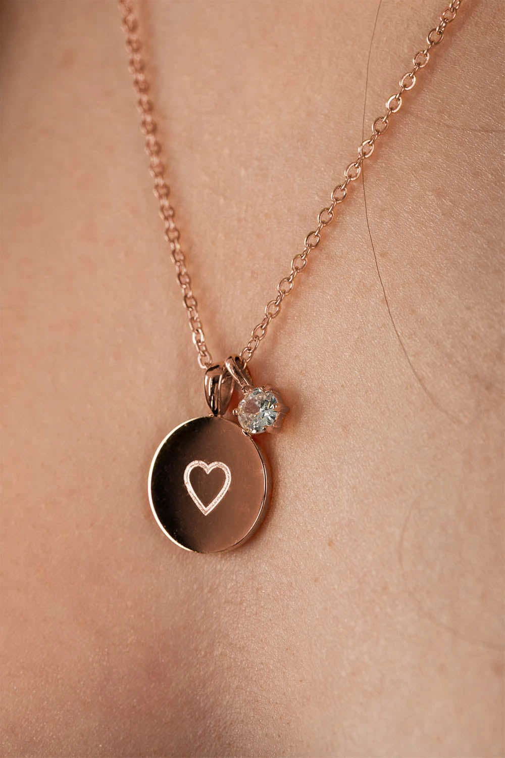 Say hello to our beautiful Birthstone Necklace, a stunning piece that comes with a rose golden plate and a coloured stone representing your birth month. April stands for innocence and love and is represented by a bright clear zirconia stone. Visit our website paul-valentine.com to add an engraving with your name, initials, or a number on the plate and give this necklace even more meaning (up to 4 characters)! Made from recycled stainless steel and 14k rose gold plating.
