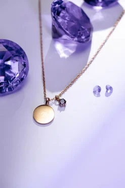 Say hello to our beautiful Birthstone Necklace, a stunning piece that comes with a golden plate and a coloured stone representing your birth month. February stands for sincerity and peace and is represented by a violet zirconia stone. Visit our website paul-valentine.com to add an engraving with your name, initials, or a number on the plate and give this necklace even more meaning (up to 4 characters)! Made from recycled stainless steel and 14k gold plating.