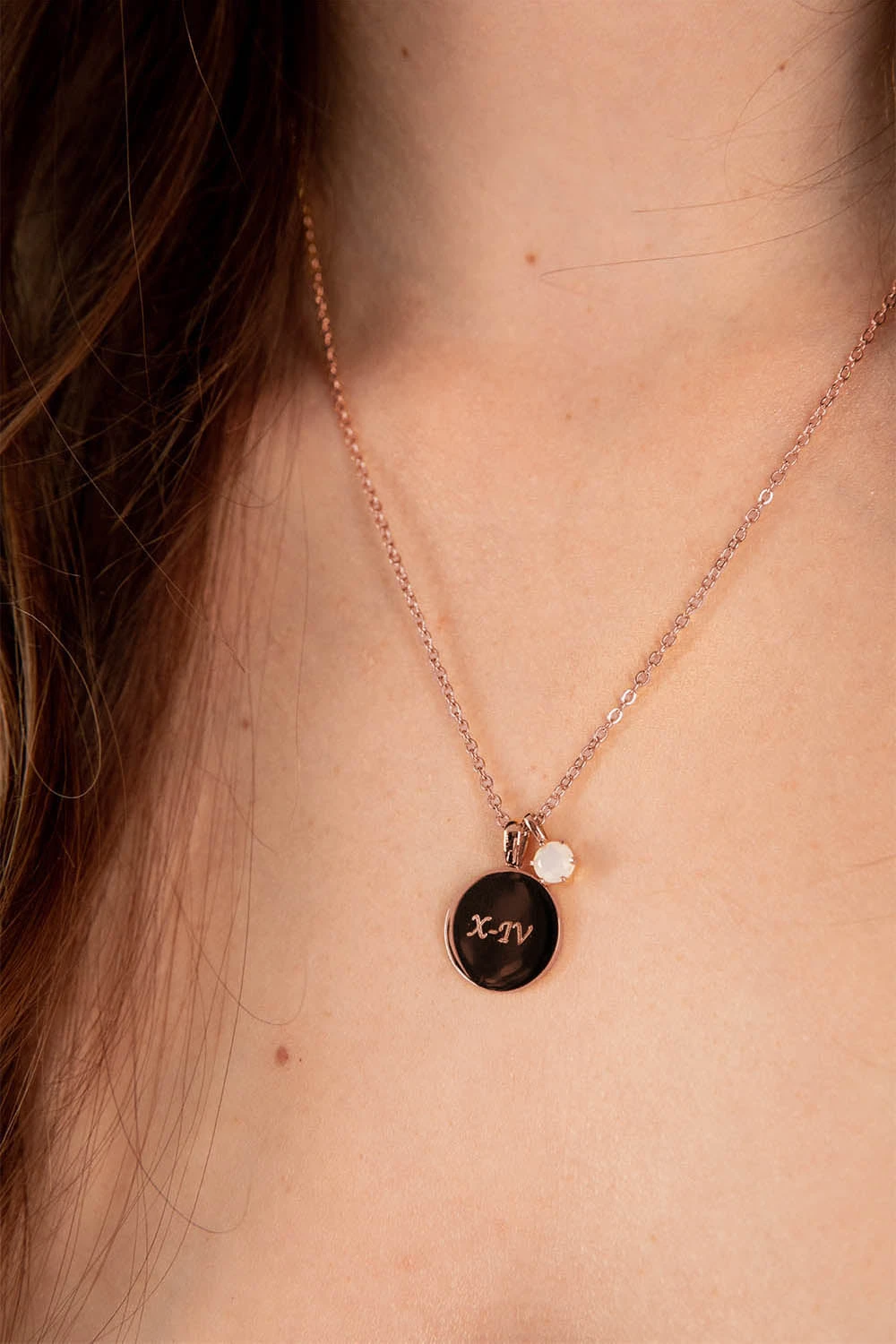 Say hello to our beautiful Birthstone Necklace, a stunning piece that comes with a rose golden plate and a coloured stone representing your birth month. October stands for balance and endurance and is represented by a bright white zirconia stone. Visit our website paul-valentine.com to add an engraving with your name, initials, or a number on the plate and give this necklace even more meaning (up to 4 characters)! Made from recycled stainless steel and 14k rose gold plating.