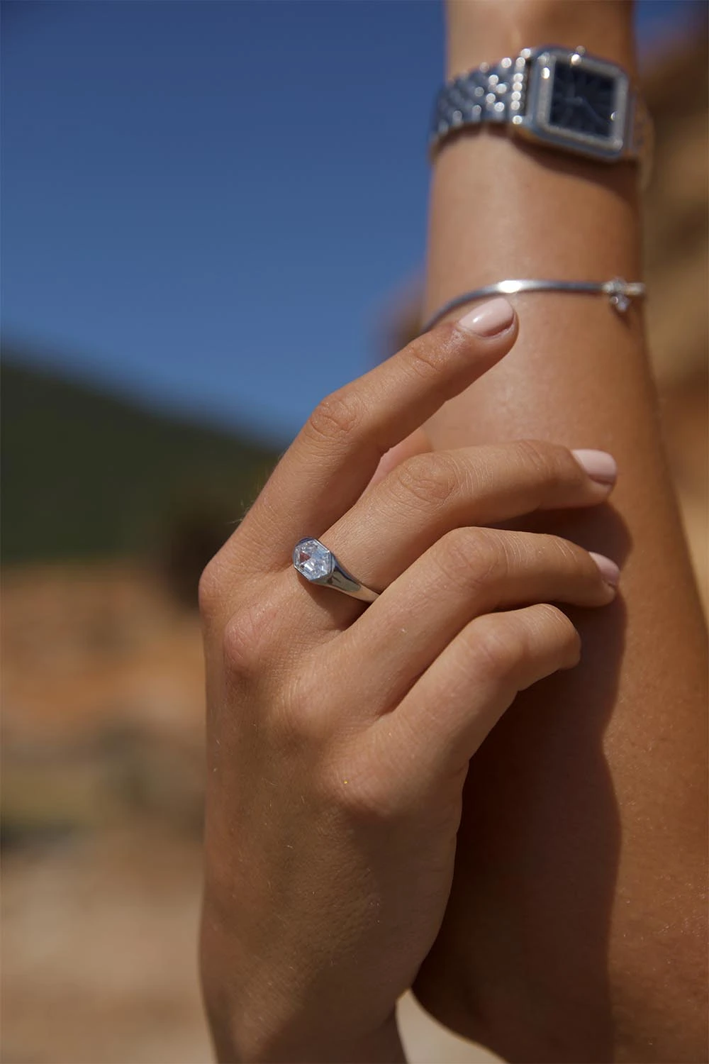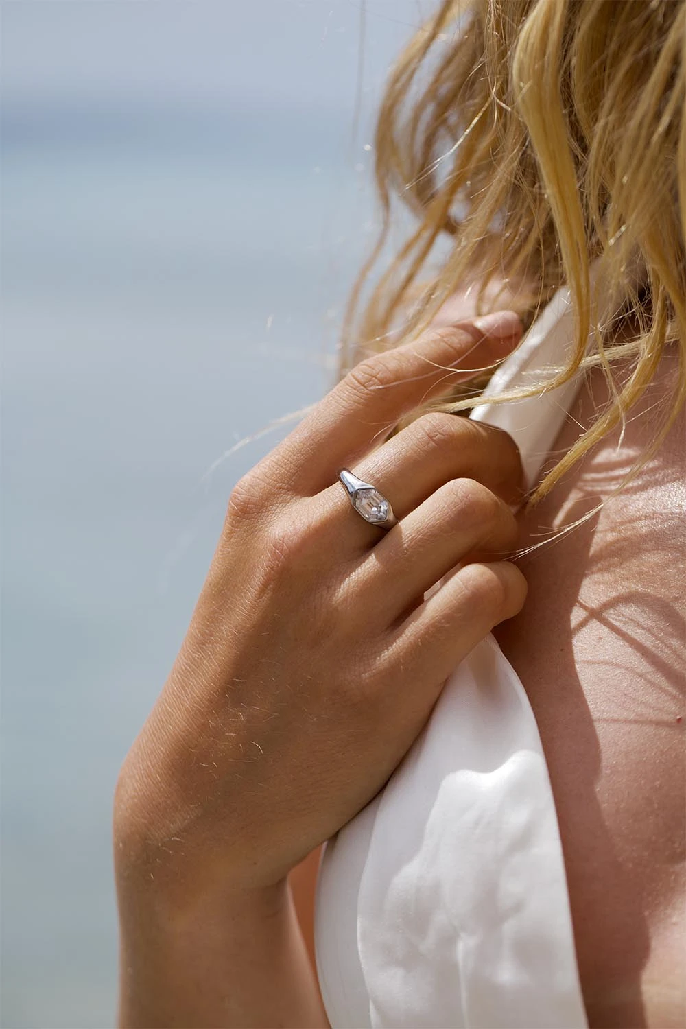 Make sweet summer dreams come true with our Bold Ring, a real statement piece! It feels lightweight on your hand, sparkles brightly with a large zirconia stone and brings a bold and elegant vibe to any summer outfit. Handcrafted from the finest of materials, it’s fully waterproof, tarnish-free, and a perfect companion for your summer. This eye-catching ring is here to stay – whether you wear it solo or as part of your favourite stack. Available in silver and gold.