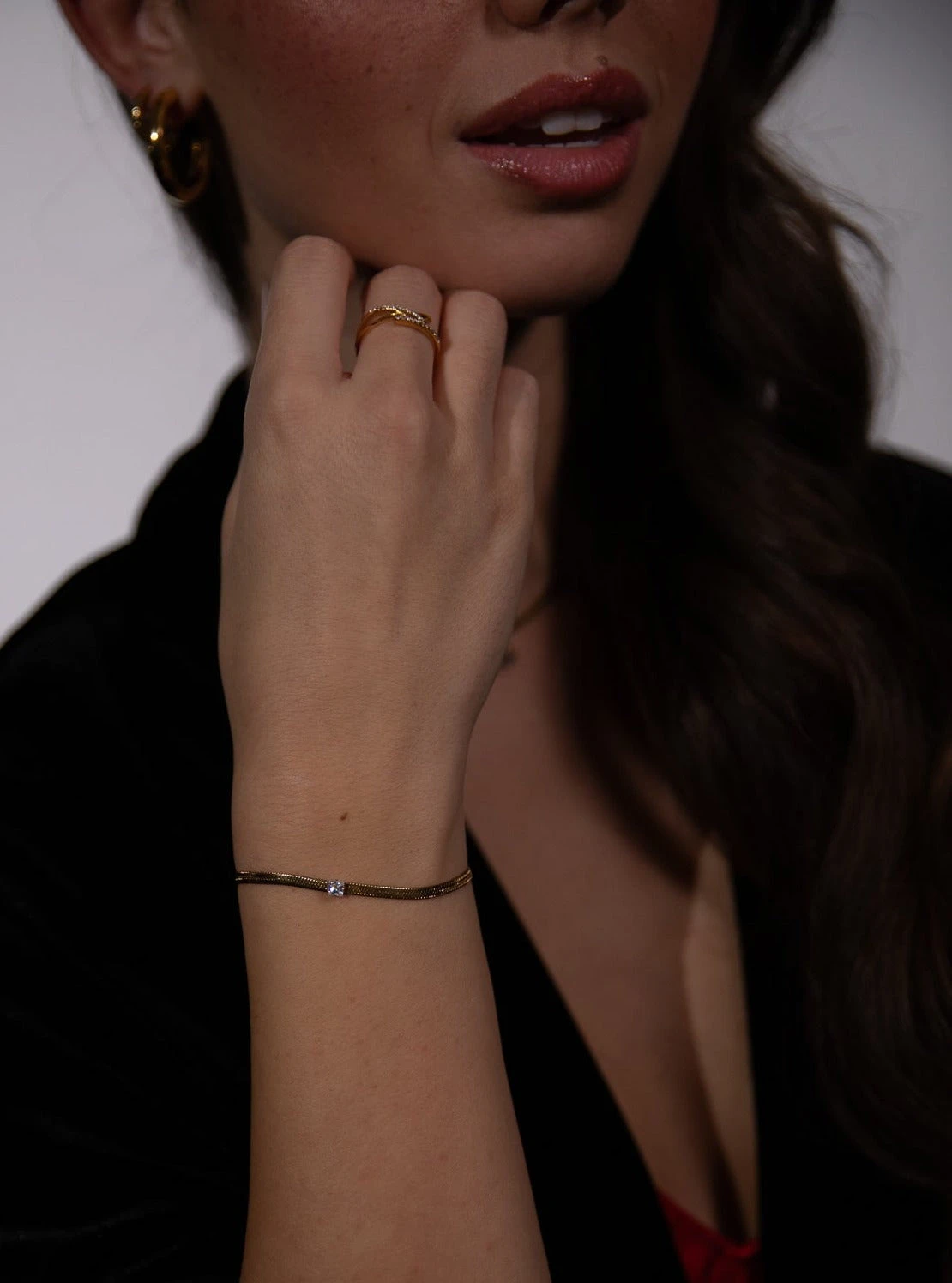 Discover our Brilliant Bracelet from the exquisite Festive Collection – one of our jewellery highlights from our Advent Calendar. The bracelet nestles smoothly around your wrist and features a sparkling zirconia stone. If the glitter is not enough for you, we recommend combining it with our Brilliant Rope Necklace from the same collection. Made from Stainless Steel with a precious 14K gold plating, this bracelet embodies the elegance and uniqueness of the Festive Collection.