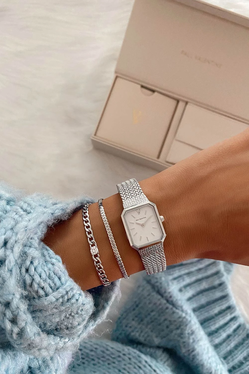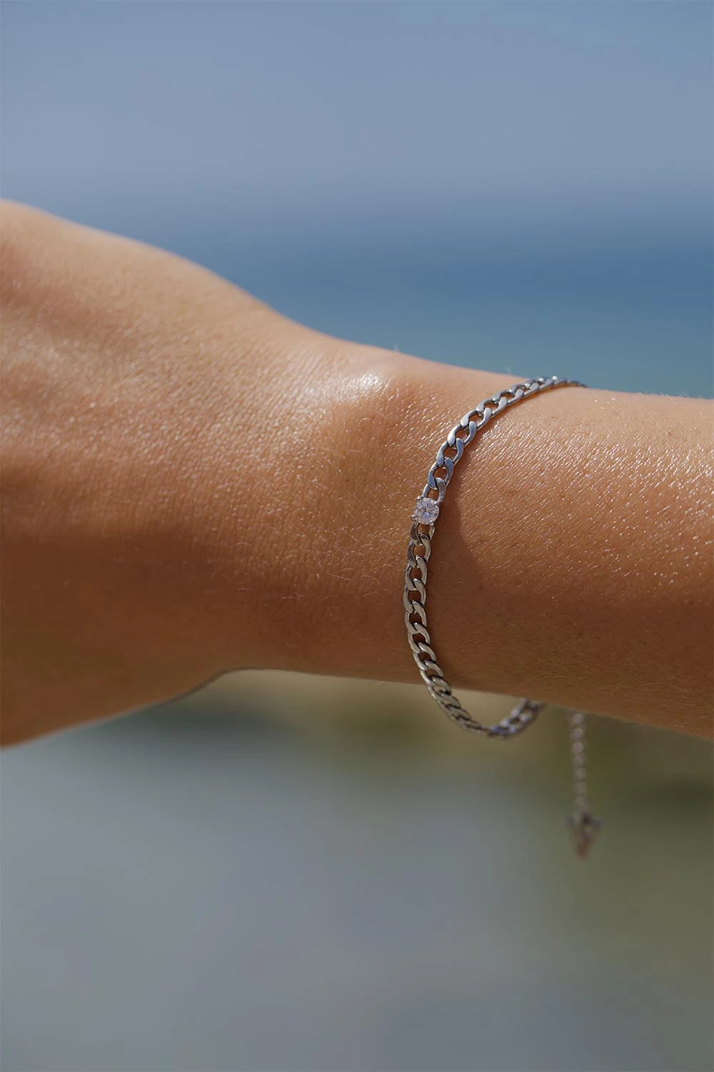 The Brilliant Curb Bracelet is a perfect place to start your stack. With its delicate chain, sparkly zirconia stone, and infinite ways of layering, it makes a great companion for your everyday look. Combine with your favorite bracelet, a chunky chain, or one of our iconic watches – or be bold and wear them all at once! Either way, it’s yours to love, layer, and keep forever. Made of stainless steel, available in silver, gold, champagne, and rose gold.