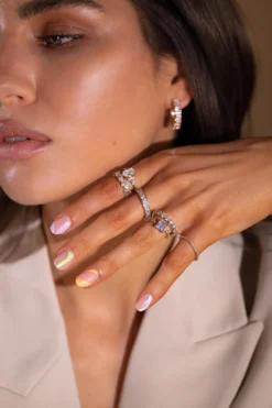 Meet our new Brilliant Square Ring: born to be stacked. Exquisite and minimalist, it is not only infinitely elegant but still packs a punch with an abundance of square zirconia stones. Mix and match with your favorite golden stacking rings! How many rings are too many rings you ask? Oh, shush. This one comes dipped in 14k gold.