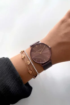 The Coffee Mesh is a timeless yet distinctive accessory, with a design that is equally elegant and sophisticated. The color is especially unique and makes every outfit stunning. The watch’s case is minimalist and ultra-thin, which makes it lightweight and comfortable to wear on the go. The watch is made from plated 316L stainless steel and crafted with a luxury stainless steel mesh strap, which is easily adjustable.