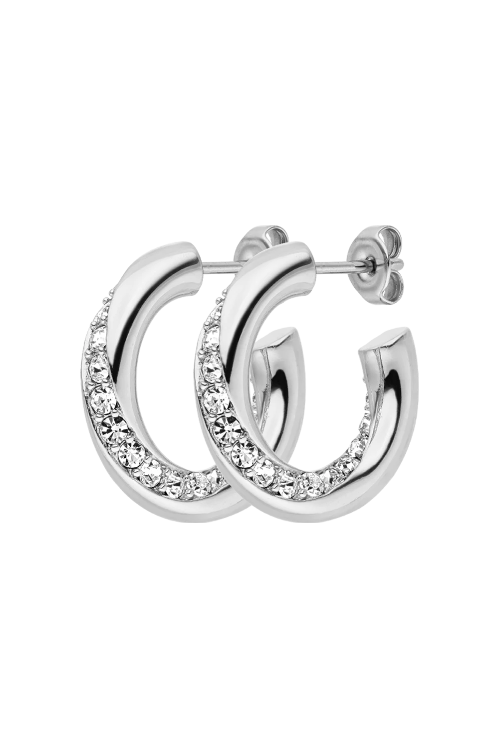 Our Crystal Hoops are a unique pair of hoops that have sparkling zirconia stones elegantly embedded into the hoop in a swirling motion. Despite this unusual design aspect, they are the perfect pair to match your everyday style – morning, noon, and night. You can wear them with your favourite jeans and t-shirt or your evening gown at your best friend’s wedding. Available in silver and 14k gold plating.