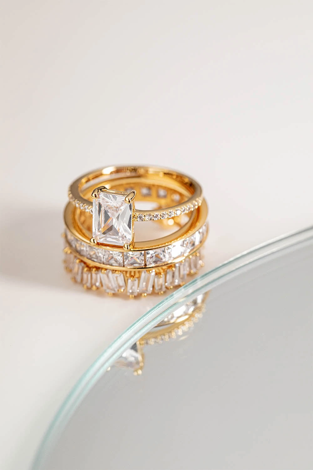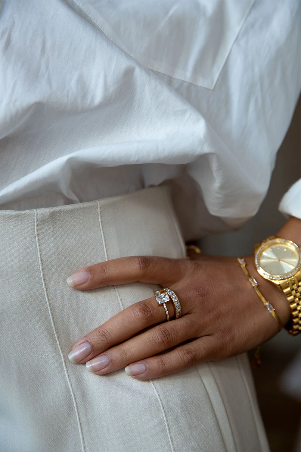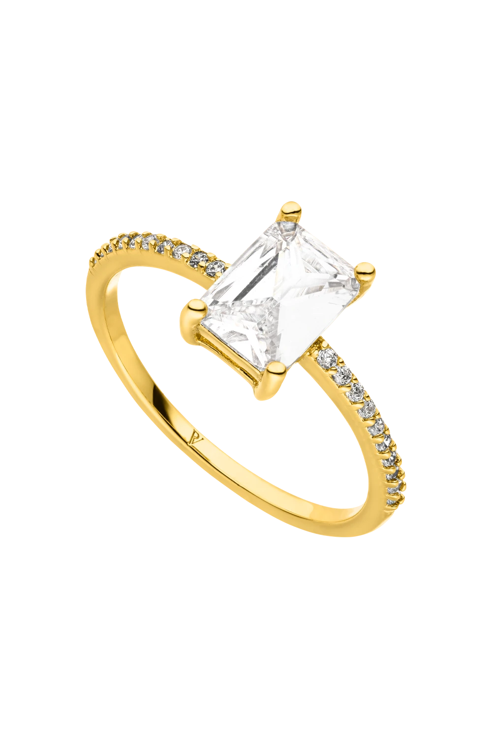 Level up your ring stack with our bold Emerald Pavé Ring. Lined with tiny zirconia stones, it adorns your finger and features a big, eye-catching zirconia stone in the centre. The most perfect ring to gift yourself and remind you of your inner beauty and strength. Wear solo or combine with your favourite stack. Made with Brass and a 14k gold or Rhodium silver plating.