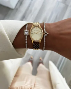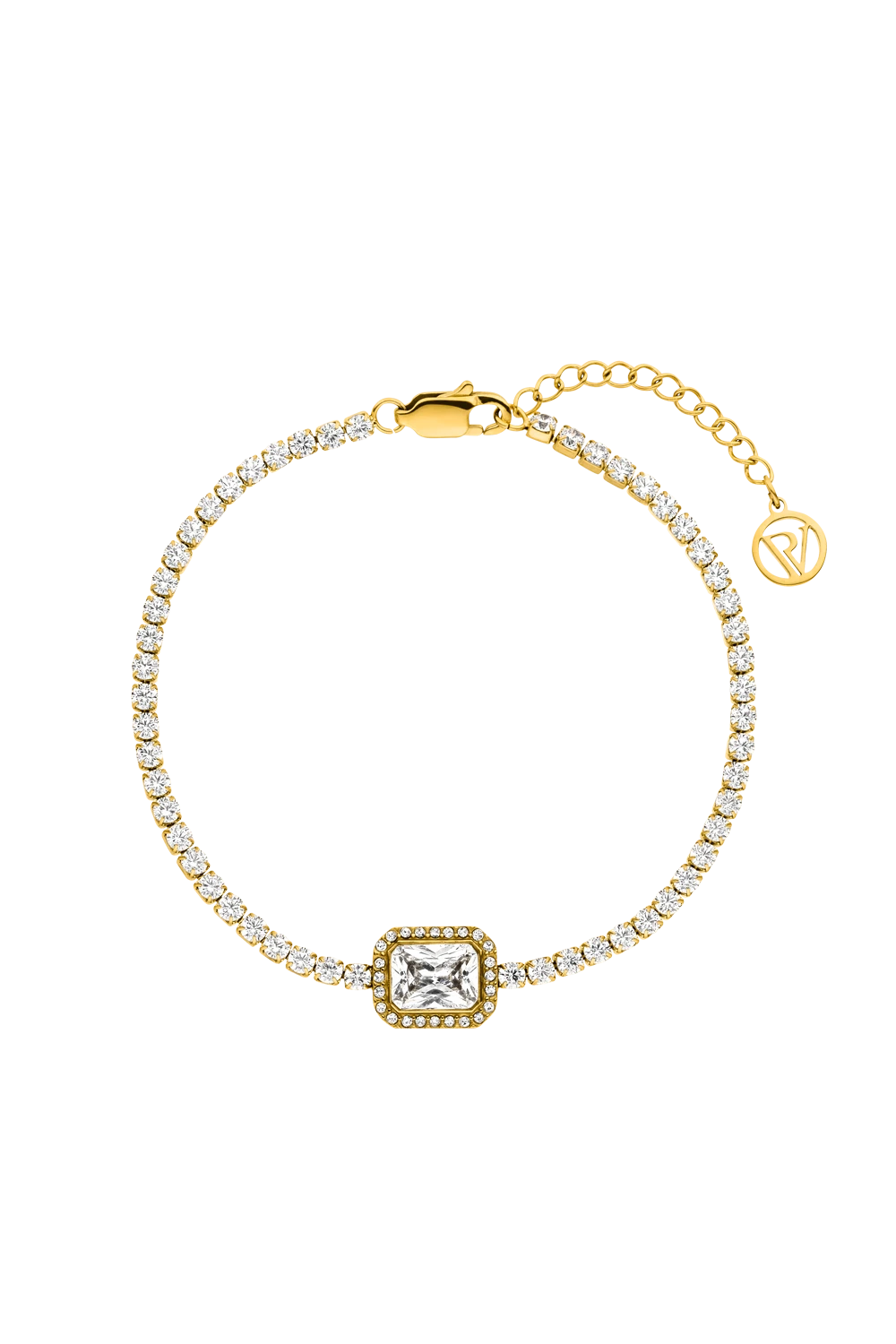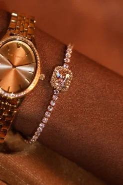 Fall in love with the stunning Emerald Tennis Bracelet: a classic and elegant piece perfect for any outfit day and night. A row of delicate zirconia stones adds sparkle, with a large zirconia stone as the eye-catching centrepiece. Discover a truly glamorous and timeless piece that will never go out of fashion. Why not create your dream stack and pair it with your favourite PAUL VALENTINE watch? Available in silver and 14k gold plating.
