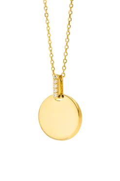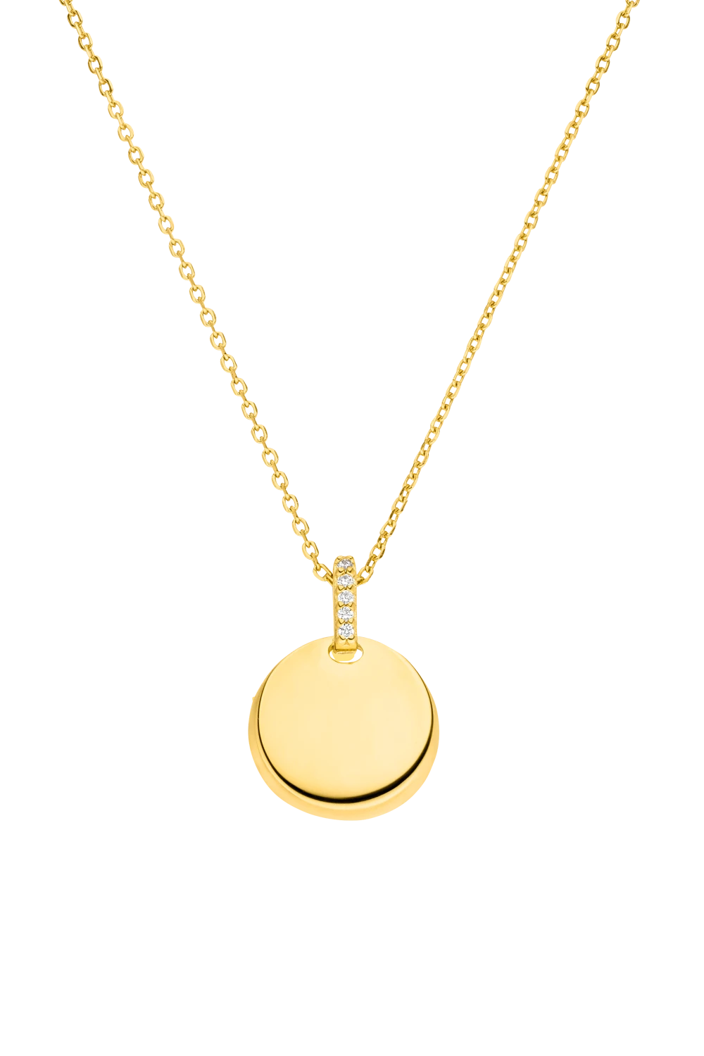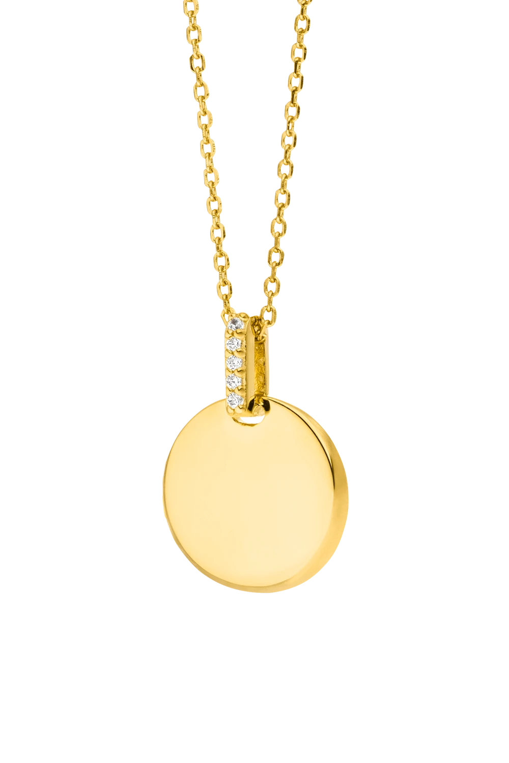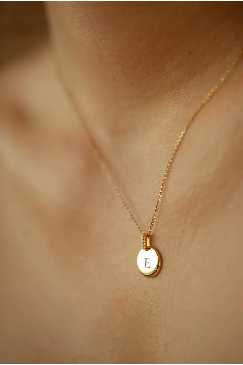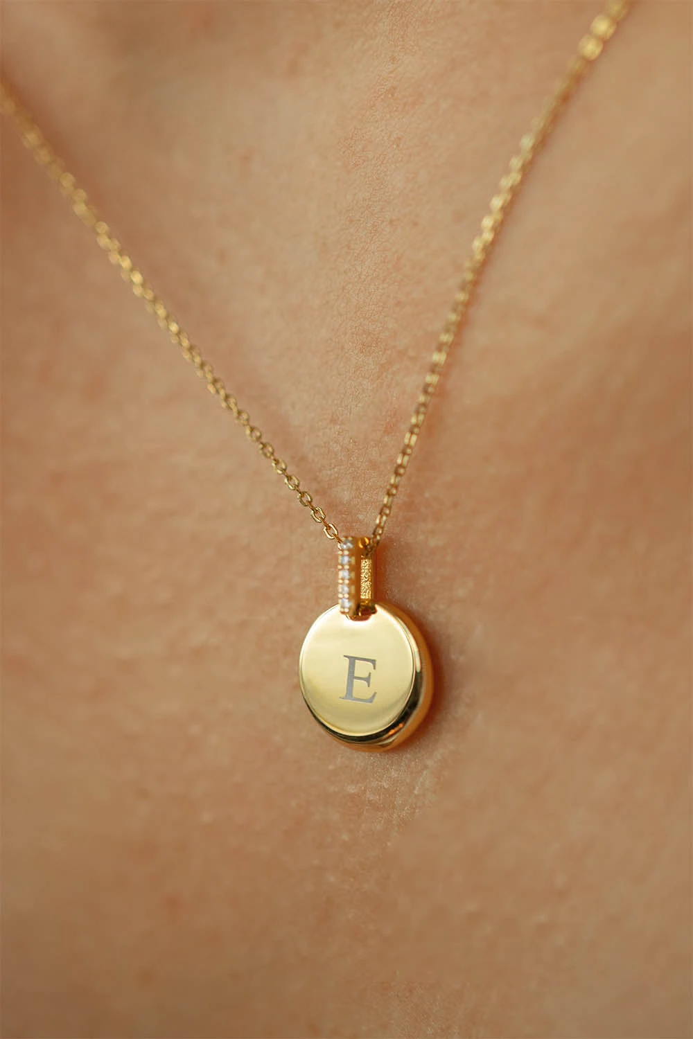 Meet our Engravable Round Pavé Necklace: an elegant layering necklace that serves as a perfect daily reminder of your favourite memory, person, or pet! You can engrave a name, initials, or a number on the plate (up to 3 characters). Looking for a gift for your girlfriend, mother, or daughter? This is a thoughtful gift for someone you love. The size of the engraving shown in the picture is for reference only – the size of the actual engraving may differ slightly. Available in silver and 14k gold plating.