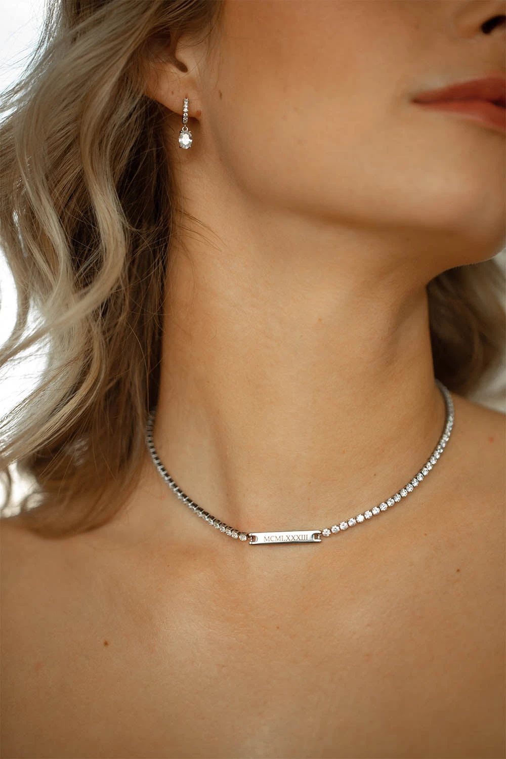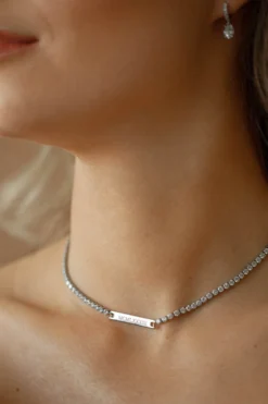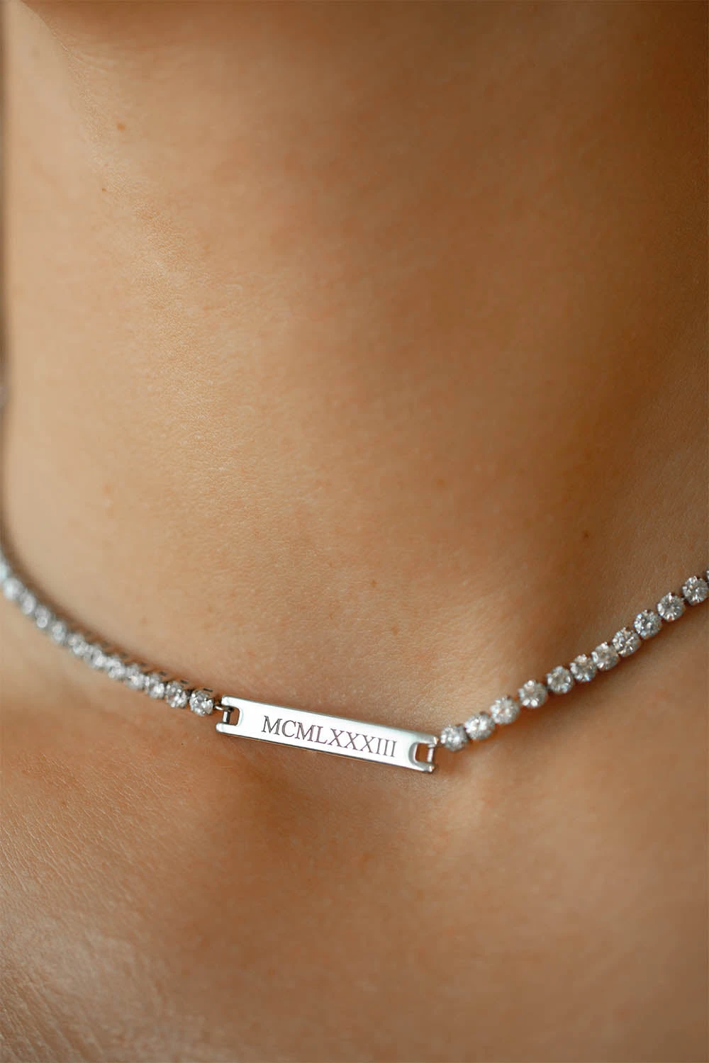 Meet our Engravable Tennis Necklace: an elegant piece with sparkling zirconia stones that serves as a perfect daily reminder of your favourite memory, person, or pet! You can engrave a name, initials, or a number on the plate (up to 10 characters). Just let your creativity flow! The necklace is also perfect as a gift for a special woman in your life. The size of the engraving shown in the picture is for reference only – the size of the actual engraving may differ slightly. Available in silver and 14k gold plating.