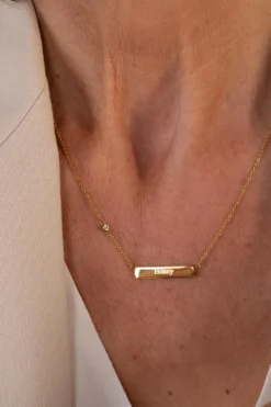 Meet our classic and elegant engravable necklace with a delicate chain (incl. a 5cm extension) and a small bar with space to engrave up to 8 characters. Whether it’s a moment in time, a cherished loved one, or a daily mantra – you can now engrave something special just for you and carry it with you at all times. Pssst… makes for a perfect gift for your bestie, lover, or your mom on Mother’s Day! Available in gold and silver.