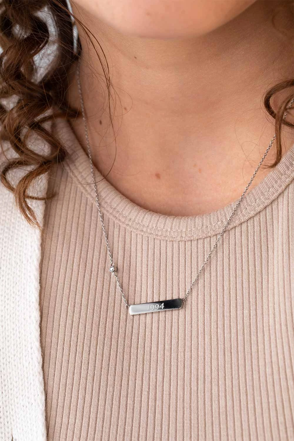 Meet our classic and elegant engravable necklace with a delicate chain (incl. a 5cm extension) and a small bar with space to engrave up to 8 characters. Whether it’s a moment in time, a cherished loved one, or a daily mantra – you can now engrave something special just for you and carry it with you at all times. Pssst… makes for a perfect gift for your bestie, lover, or your mom on Mother’s Day! Available in gold and silver.