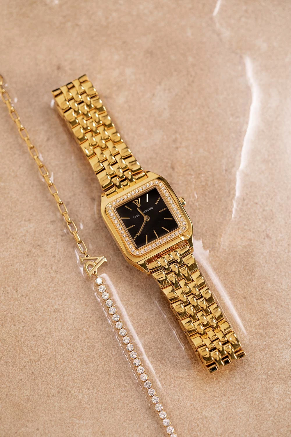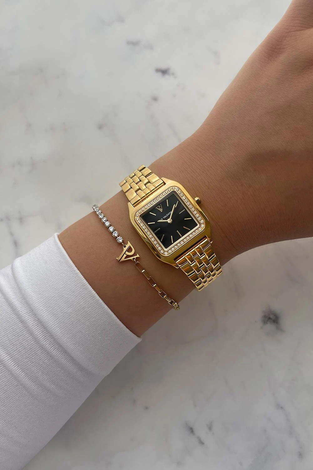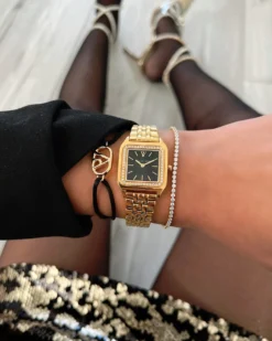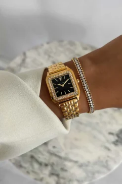 Fall in love with the Eternal Watch Gold Black: radiant gold, a beautiful black dial, and extra shine thanks to high-quality materials and iconic design. This watch is the first model in which delicate cubic zirconia stones decorate the bezel! Pure confidence strapped to your wrist and lasts a lifetime! A watch for your personal evolution.