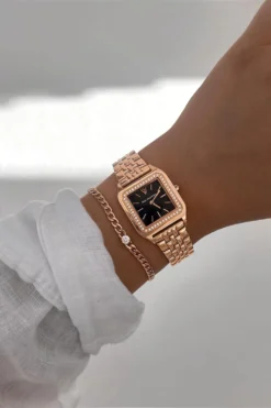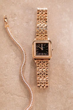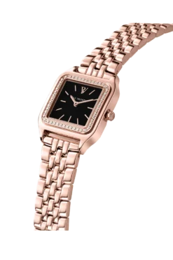 Fall in love with the Eternal Watch Rose Gold Black: radiant rose gold, a beautiful black dial, and extra shine thanks to high-quality materials and iconic design. This watch is the first model where delicate cubic zirconia stones decorate the bezel. This beauty will last you a lifetime! Pure confidence strapped to your wrist. A watch for your personal evolution.