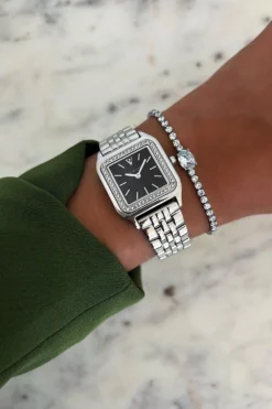 Fall in love with the Eternal Silver Black: classic silver, a beautiful black dial, and extra shine thanks to high-quality materials and iconic design. This watch is the first model where delicate cubic zirconia stones decorate the bezel. This beauty will last you a lifetime! Pure confidence strapped to your wrist. A watch for your personal evolution.