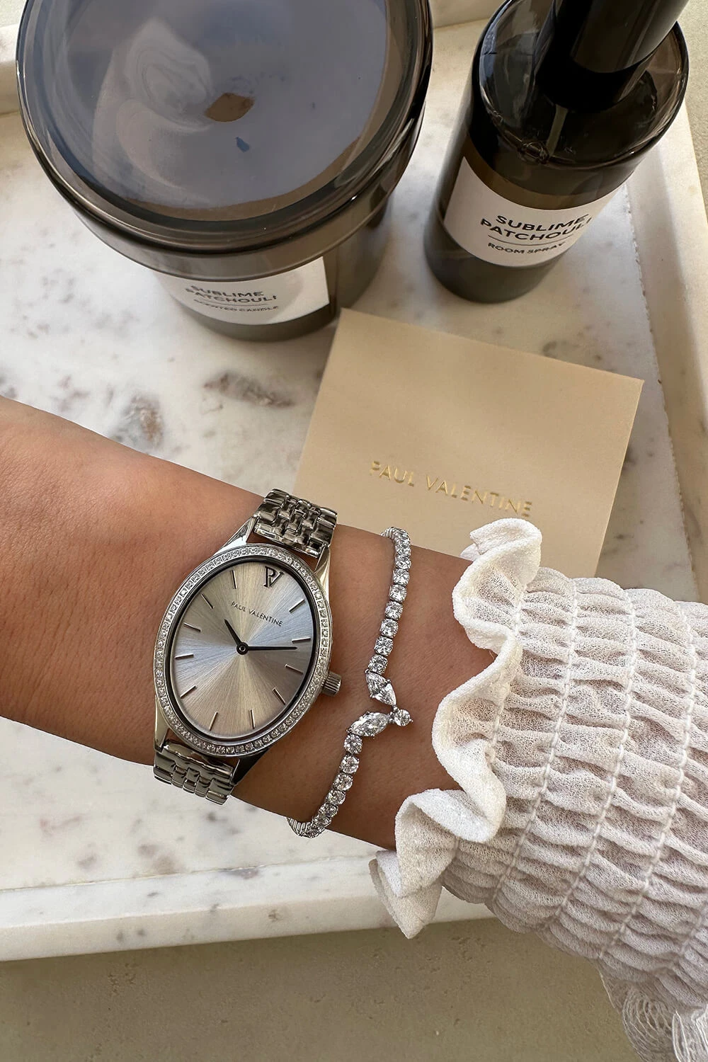 Fall in love with our Iconic Watch Oval: radiant gold or silver, a beautiful oval dial lined with zirconia stones, and extra shine thanks to high-quality materials and iconic design. This watch is the first model where delicate zirconia stones decorate the bezel! This watch for your personal evolution feels like pure confidence strapped to your wrist! Available in gold and silver.
