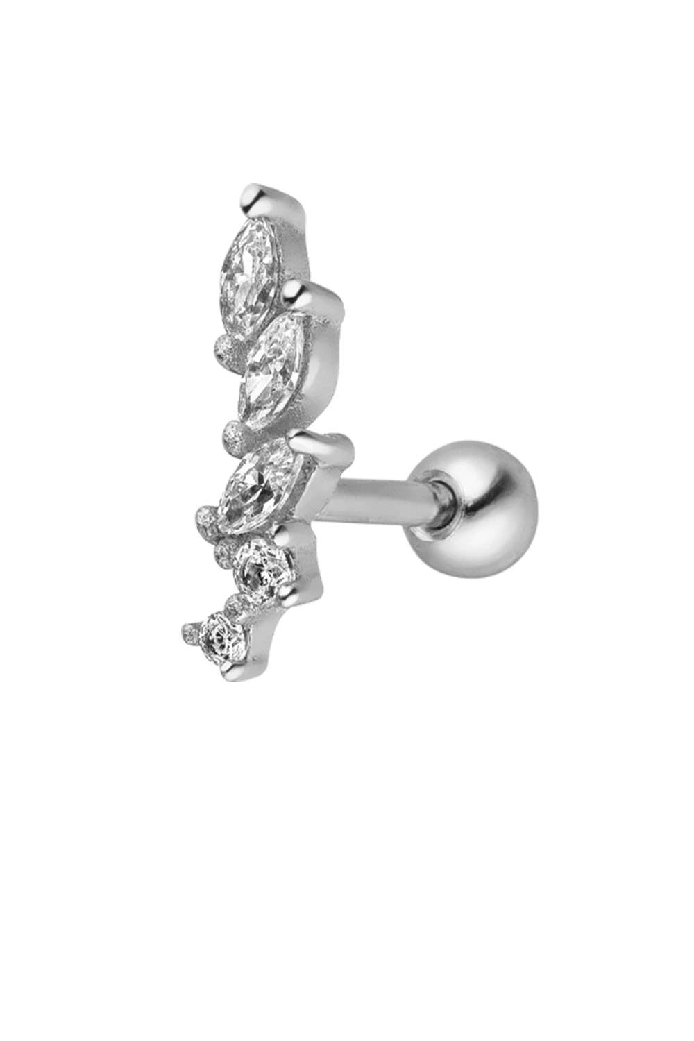 Say hello to Paul Valentine’s very first piercing collection and meet one of our newest beauties on the block: the Jade Piercing. This simple stud features a row of oval-shaped zirconia stones that flow into an organic half-moon shape. Treat yourself to a feminine piece that complements your signature look. It will remind you to feel beautiful and confident inside out, every day of the year. Available in sterling silver and 14k gold. Please note: This product is a single piercing with just one piece, not a set of earrings.