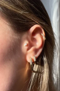 Say hello to Paul Valentine’s very first piercing collection and meet one of our newest beauties on the block: the Lotus Piercing, a feminine piece to complement your signature look. This simple stud features three delicate zirconia stones shaped like a lotus flower. Why not treat yourself to a small reminder that beauty is everywhere? And much like the lotus flower, it can grow in places you’d never expect. Available in sterling silver and 14k gold. Please note: This product is a single piercing with just one piece, not a set of earrings.