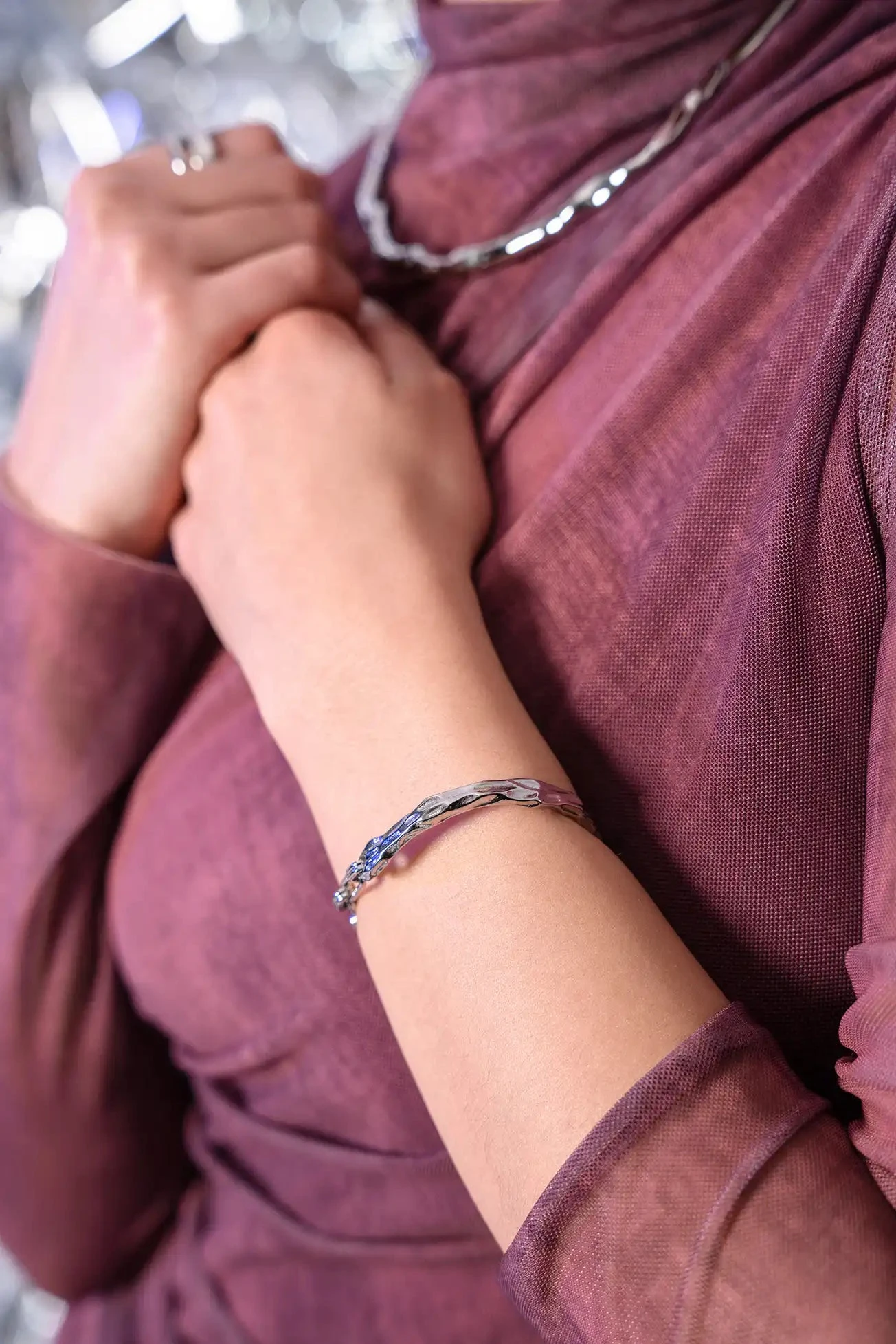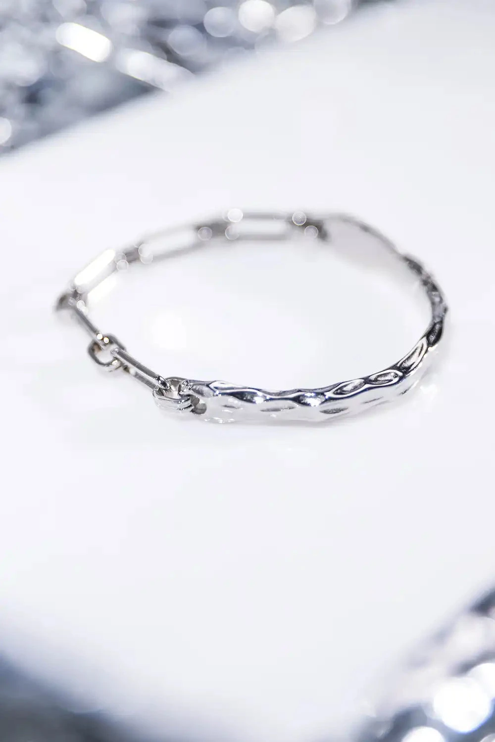 The Molten Bangle from the Space Safari collection is a very special piece of jewelry that pushes the boundaries of the ordinary. Inspired by the infinite expanse of space and the mysterious shapes it conceals, this bangle features a futuristic design. The coarse mesh links and unique surface texture capture the essence of galactic beauty and transform it into a unique accessory. With a touch of elegance and a feeling of extravagance, the Molten Bangle is an absolute eye-catcher. Available in gold and silver.