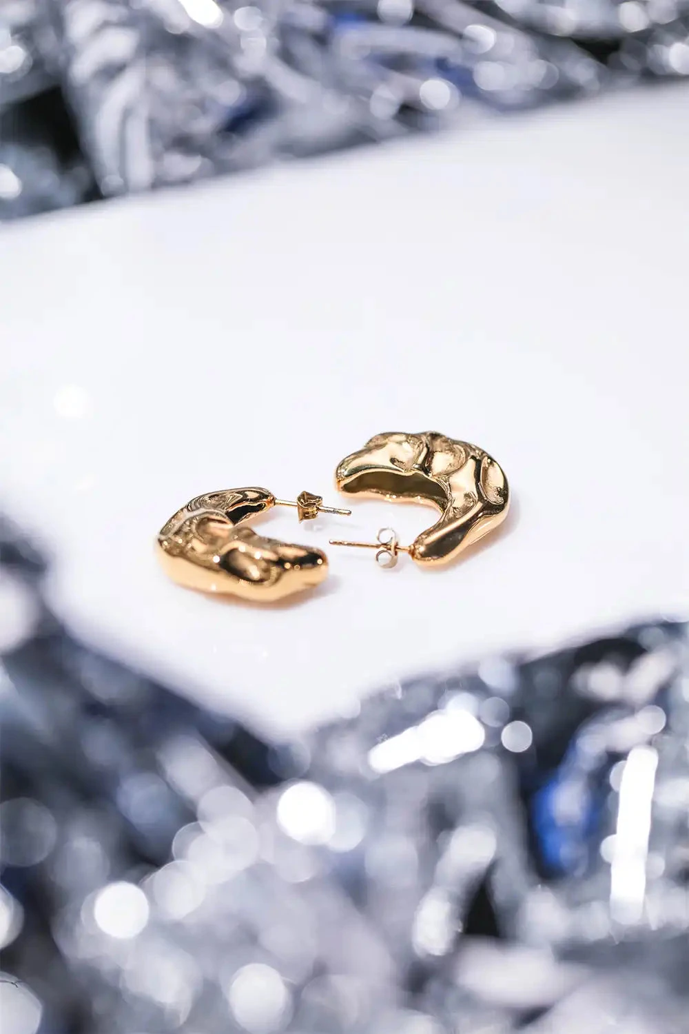 The Molten Chunky Hoops from the Space Safari collection are a stunning statement for any occasion. Inspired by the fascinating shapes and colors of outer space, these striking hoops feature a moon-like and extraterrestrial structure made of high-quality stainless steel. The modern yet timeless design of the hoops makes them perfect for combining with other products from the Space Safari collection. Made from stainless steel and available in gold and silver.