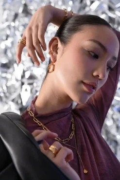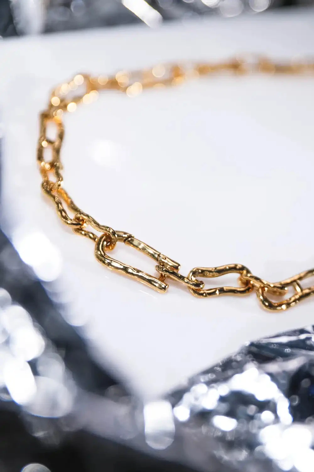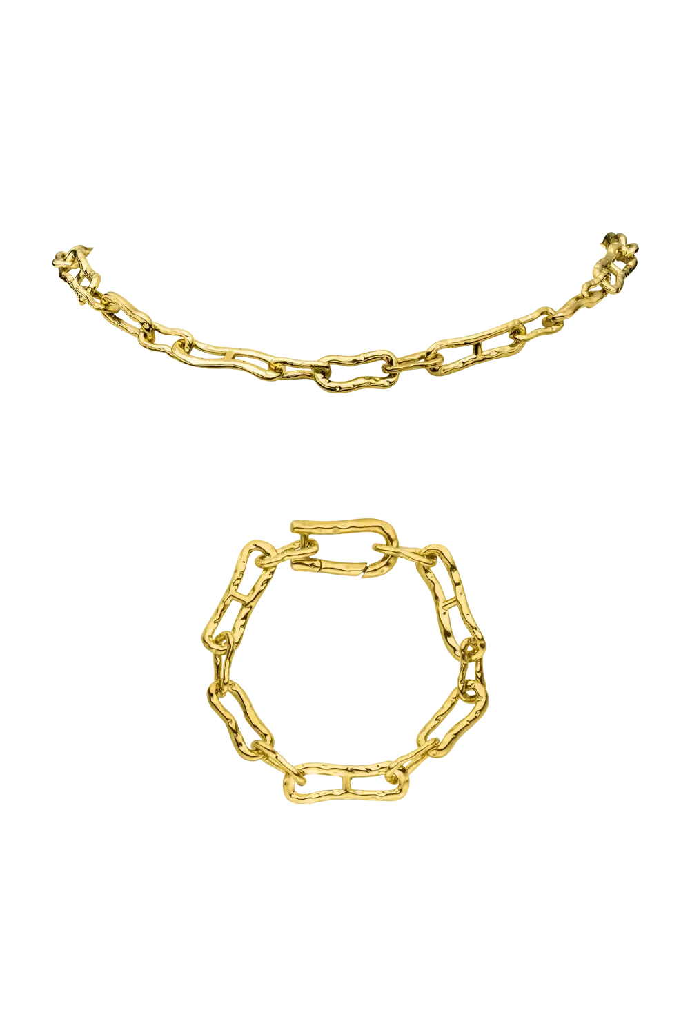 Discover the Molton Chunky Set with pieces from the Space Safari collection. This bundle includes the Molten Chunky Bracelet and the Molten Chunky Necklace, both of which embody the ultimate statement of style and sustainability. The jewelry pieces are a modern accessory composed with textured stainless steel links, exuding both elegance and natural inspiration. Available in gold and silver. Get this ensemble and make a bold statement for special occasions!