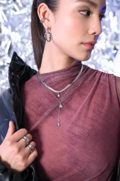 The Molten Sleek Necklace from the Space Safari collection is the ultimate embodiment of style and sustainability. Inspired by the shapes, colors and mystical beauty of outer space, this necklace stands out with its sleek silhouette and sophisticated design. The minimalist yet elegant accessory adds subtle sophistication to any outfit and is also the perfect starting point for your personal jewelry stack. The centerpiece of the necklace is the pendant, which, like the entire necklace, is made of stainless steel and therefore impresses with its durability.  Available in the timeless colors gold and silver.