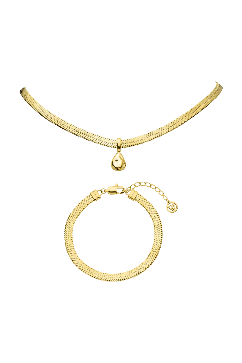 Discover the Molton Sleek Set – a perfect combination of elegance and sustainability! The bundle includes the Molten Sleek Bracelet and the Molten Sleek Necklace from the Space Safari collection. The sleek design and sophisticated silhouette make them ideal accessories for every day and the perfect starting point for your personal jewelry stack. Made from stainless steel, they are durable and timeless. Available in gold and silver.