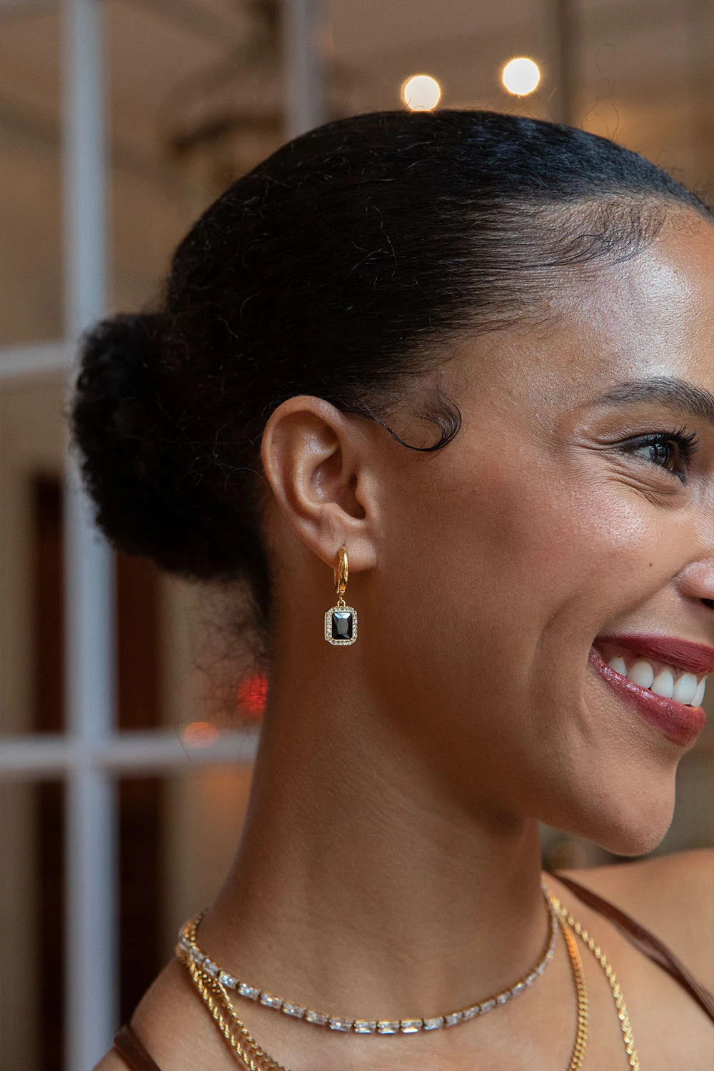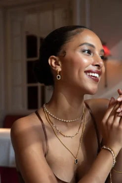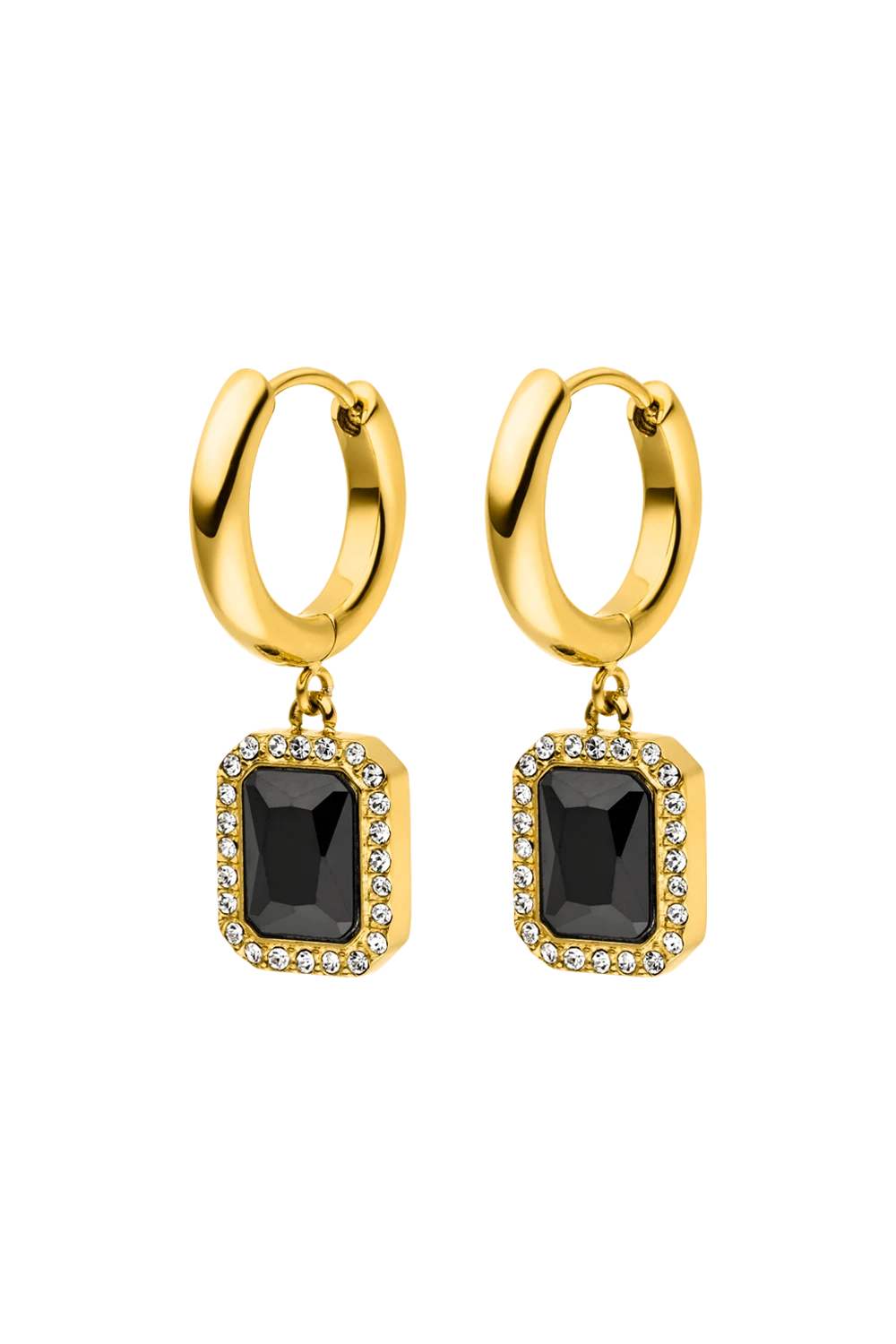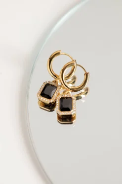 Say hello to our Pavé Emerald Huggies Black, a bold pair of earrings with a touch of vintage. The large black zirconia stone is lined with countless tiny zirconia stones, bringing in even more subtle elegance and shine. Pair with our Pavé Emerald Black Bracelet or Necklace to complete your look. Made from recycled stainless steel with a 14K gold ion plating.