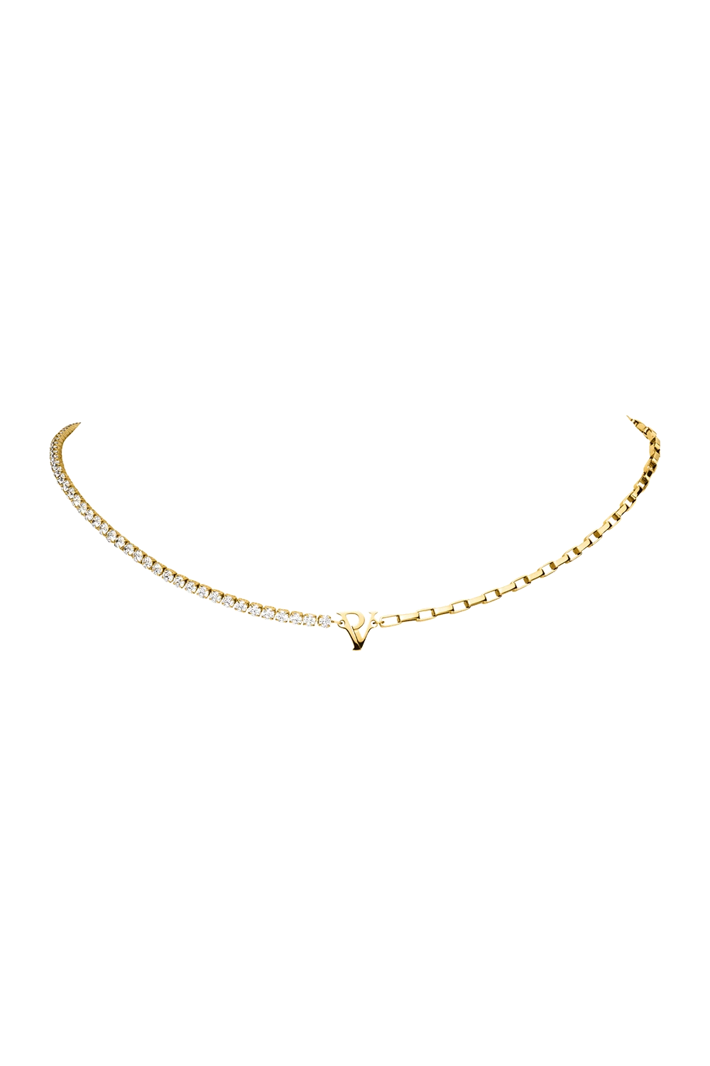 You asked, we listened! Meet the PV Tennis & Chain Necklace: Our bestselling bracelet is finally available as a necklace: a classic and elegant piece perfect for any outfit, day and night. A row of beautiful zirconia stones adds sparkle and turns it into a glamorous and timeless piece that will never go out of style. Available in gold and rose gold plating, champagne, and silver.