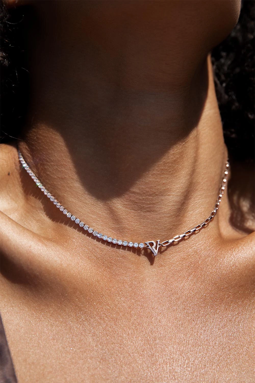 You asked, we listened! Meet the PV Tennis & Chain Necklace: Our bestselling bracelet is finally available as a necklace: a classic and elegant piece perfect for any outfit, day and night. A row of beautiful zirconia stones adds sparkle and turns it into a glamorous and timeless piece that will never go out of style. Available in gold and rose gold plating, champagne, and silver.