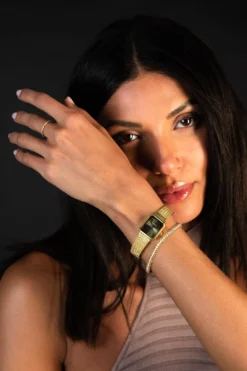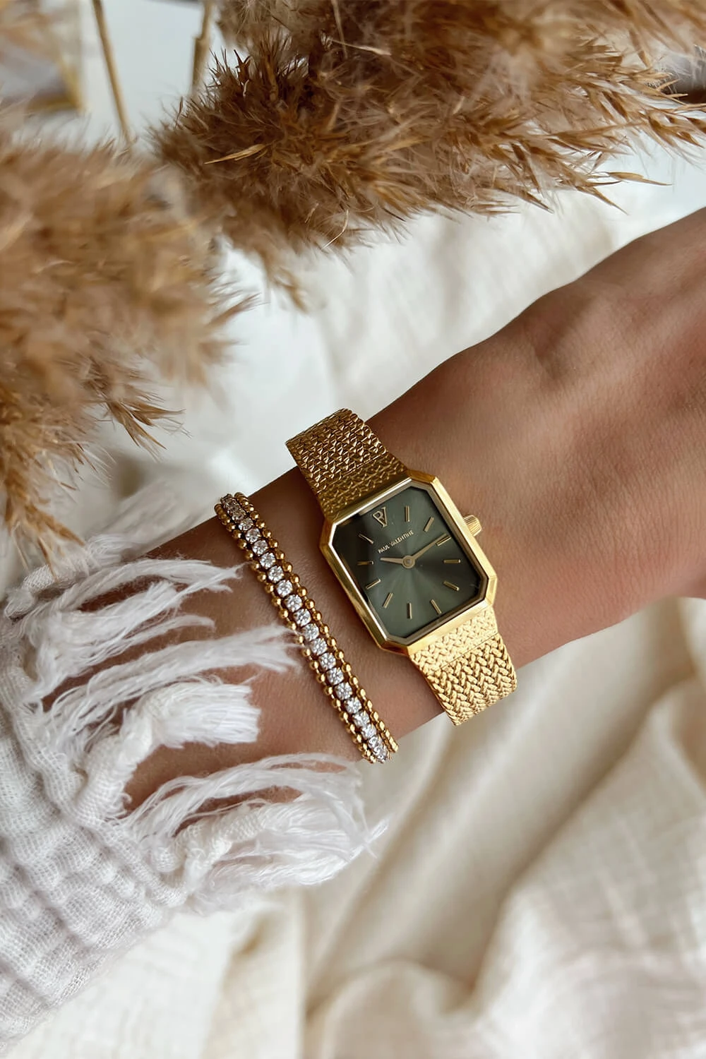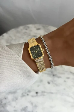 The new Retrospecta Watch makes a chic vintage statement. Featuring a high-quality mesh wrist strap and lovingly crafted from durable stainless steel and 18k gold plating, this watch is wearable everyday and will effortlessly complement any outfit. Wear alone or pair with our Retro Sparkling Bracelet to add an extra dazzle to your look. Delicate design, perfect for slender wrists.