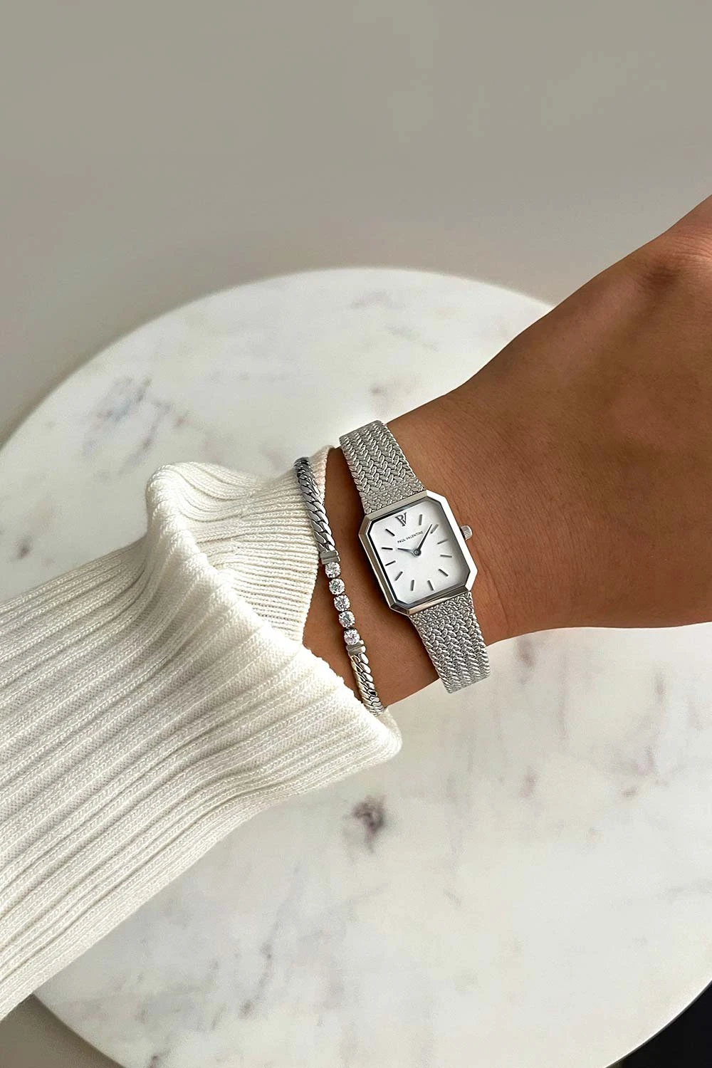 The new Retrospecta Watch from the latest Paul Valentine Retrospective collection makes a chic vintage statement. Featuring a high-quality mesh wrist strap and lovingly crafted from durable stainless steel, this watch is wearable everyday and will effortlessly complement any outfit. Wear alone or pair with our Sparkling Bracelet to add an extra dazzle to your look. Delicate design, perfect for slender wrists.