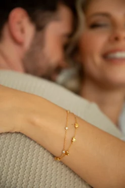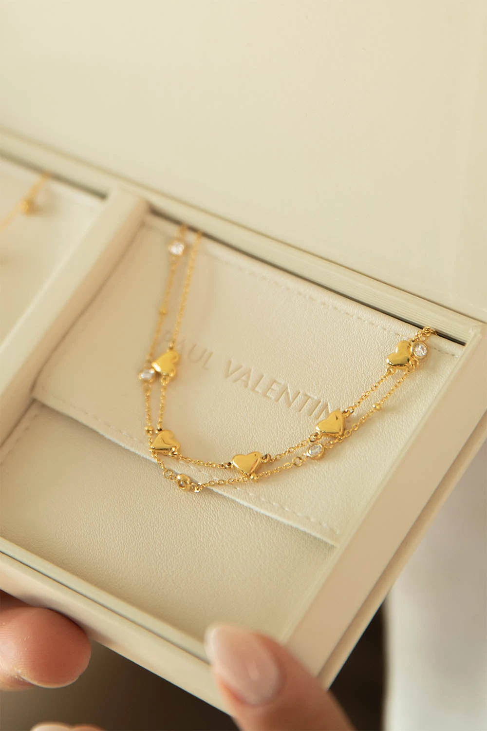 Meet our Shining Heart Bracelet: a playful, delicate bracelet with a feminine touch. Small hearts and zirconia stones create beautiful sparkles all around the bracelet drawing attention to your wrist. Wear it solo or add it to your favourite wrist stack. Either way, this piece makes for a timeless essential in any jewellery collection! Available in 14k plated gold and silver.