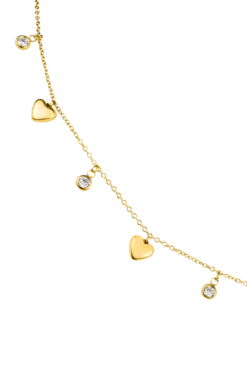 Meet our Shining Heart Necklace: a playful, delicate necklace with a feminine touch. Small hearts and zirconia stones create sparkles along the elegant chain while drawing attention to your neckline. Wear it solo or get creative with your favourite layering styles. Either way, this piece makes for a timeless essential in any jewellery collection! Available in 14k plated gold and silver.