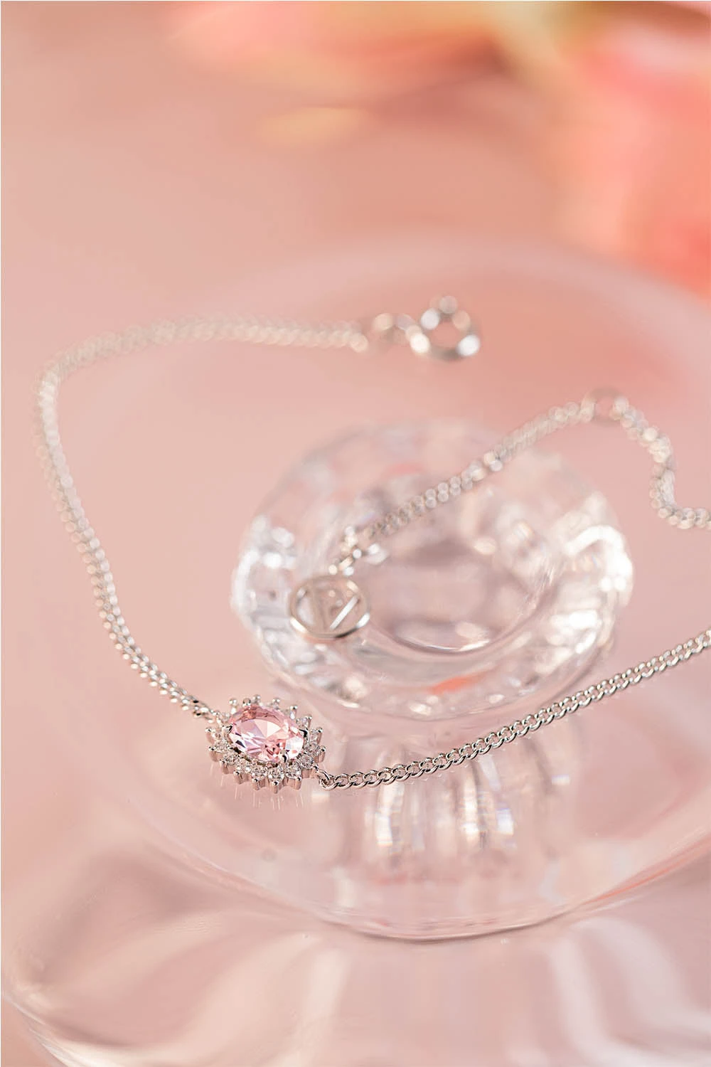 Fall in love with our Sparkle Bracelet Pink from the Limited Rose Collection. A large, eye-catching pink zirconia stone is the heart of this elegant bracelet, with small zirconia stones lining the main stone and adding even more sparkle to your wrist! A perfect piece to celebrate a special bond between two people! If you’re shopping for yourself, a perfect piece to show yourself some love and uplevel your wrist stack. Available in silver and gold.
