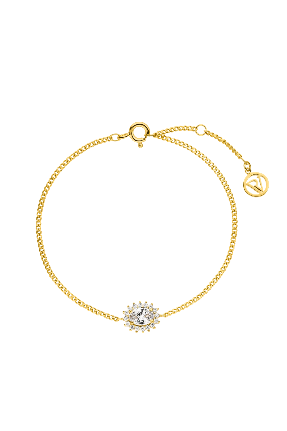 Fall in love with our Sparkle Oval Bracelet from the Sparkle Collection. A large, eye-catching zirconia stone is the heart of this elegant bracelet with small zirconia stones lining the centrepiece and adding even more sparkle to your wrist. Love to create your unique stack? Combine this piece with the Sparkle Sleek Bracelet from our Sparkle Collection. Available in silver and gold.