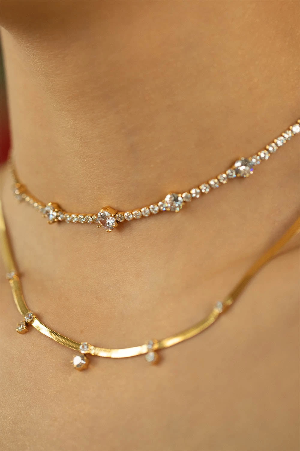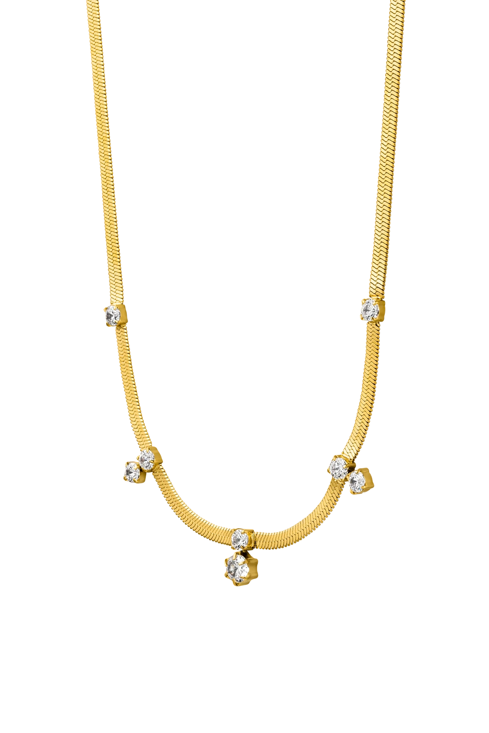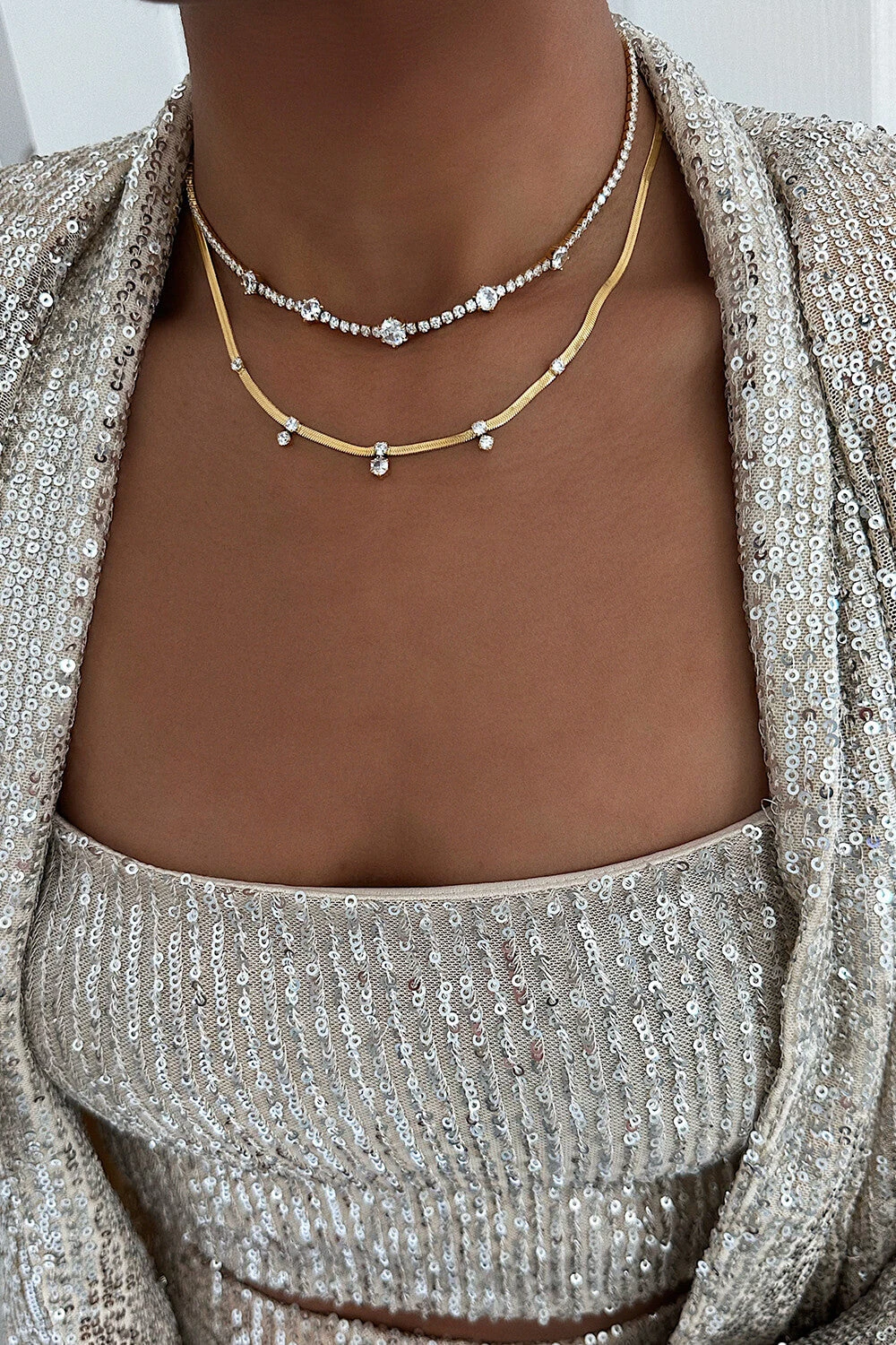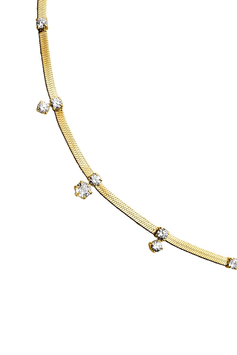 Meet the Sparkle Sleek Necklace: an ultra-elegant piece that will drape beautifully around your neck and leave a feeling of pure luxury on your skin. Small delicate zirconia stones add sparkle and draw attention to your neckline. Love a good layering? Combine it with the Sparkle Oval CZ Necklace or the Sparkle Tennis Necklace. Available in silver and gold.