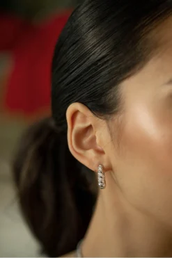 A girl can never have enough hoops! Fall in love with our Sparkle Twisted Hoops, a pair of small hoops with a beautifully organic shape and a swirl of beautiful gold or silver and an abundance of small zirconia stones that add extra sparkle. This is the perfect dazzling pair of earrings roll right into a sparkling Christmas season and a shiny New Year ! Available in silver and gold.