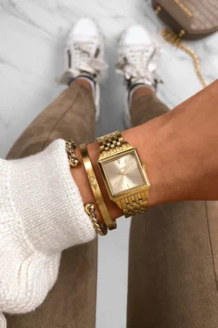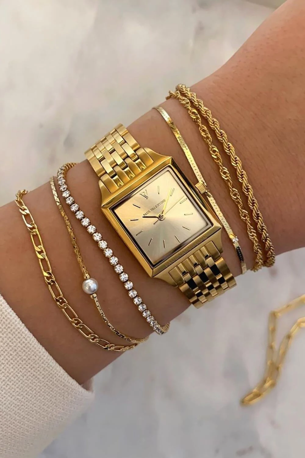 Beaming like the sun does at daybreak, the Vindemia Gold Watch holds a beautiful, remarkable energy that every vintage inspired accessory needs. Made with the strongest stainless steel and artistically plated with the highest quality 18k gold, this watch proves its value and quality time after time.