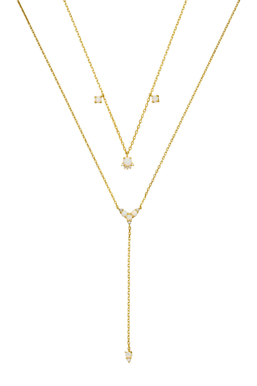 The Y-Opal Hope set, featuring the stunning Opal Hope Y-necklace and the enchanting Opal Hope necklace, lends a unique allure to your look. The Y-necklace adds a modern and elegant touch, while the Opal Hope necklace captivates with its timeless design. Choose between the warm glow of 14K Gold Plated or the timeless elegance of silver and immerse yourself in the enchanting world of the Opal Dream Collection.
